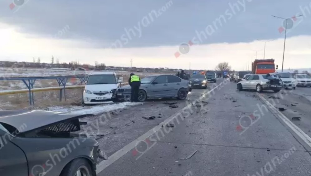 Հերթական խոշոր ու շղթայական ավտովթարը Հայաստանում․ մերկասառույցի պատճառով վաղ առավոտյան բախվել է 14 ավտոմեքենա