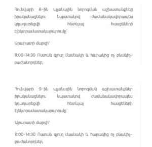 Տարվա առաջին օրերի պլանային անջատումներ. ստուգեք՝ ձեր հասցեն ներգրավվա՞ծ է