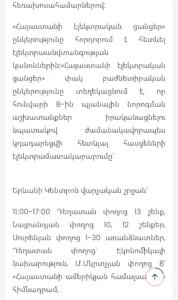 Լույս չի լինելու հունվարի 8-ին, 9-ին, 12/14/15/16-ին