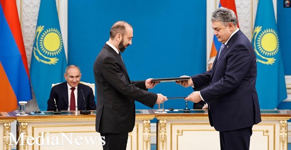ՀՀ վարչապետ Նիկոլ Փաշինյանի Ղազախստան պաշտոնական այցի շրջանակներում ԱԳ նախարար Արարատ Միրզոյանը և Ղազախստանի համապատասխան գործընկերները ստորագրել են փաստաթղթեր՝ քաղաքական երկխոսության ու երկու երկրների ԱԳ նախարարությունների միջև փոխգործակցության հետագա ամրապնդման, տնտեսական համագործակցության խթանման, արհեստական բանականության, ինչպես նաև այլ ոլորտներում Հայաստանի և Ղազախստանի միջև գործընկերության ընդլայնման ուղղություններով: