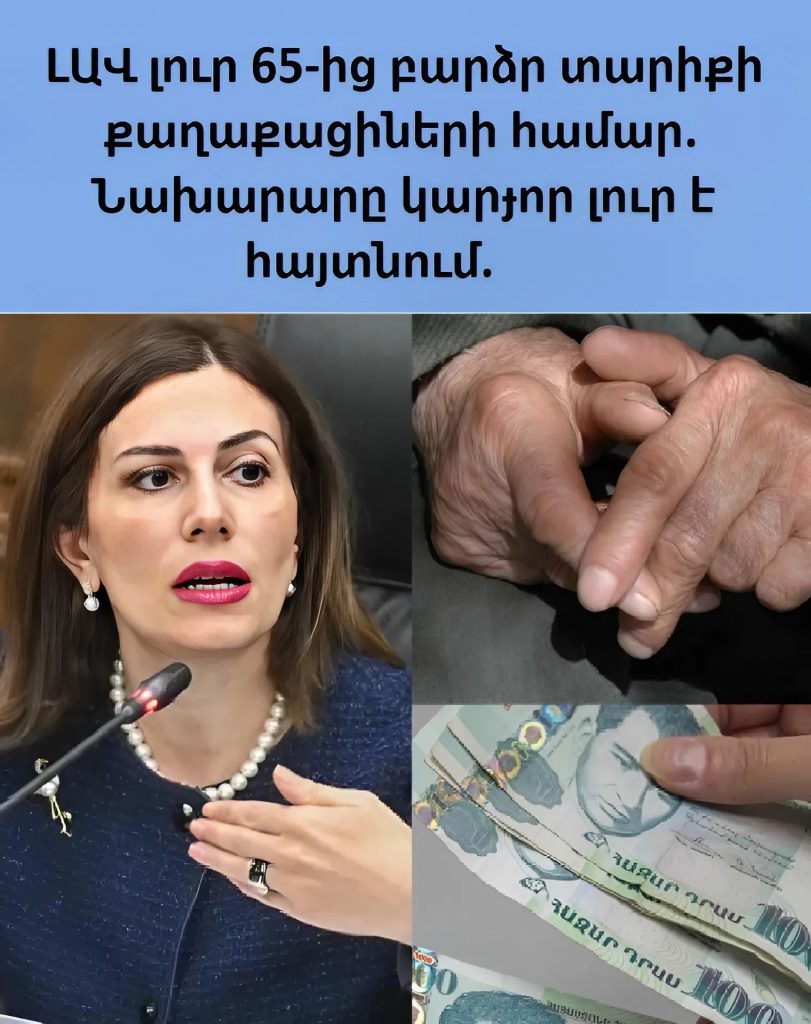 ԼԱՎ լուր 65-ից բարձր տարիքի քաղաքացիների համար. Նախարարը կարևոր լուր է հայտնում.