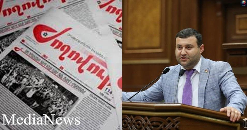 Պատգամավորն իրեն զրպարտելու համար դատի է տվել «Ժողովուրդ»-ին